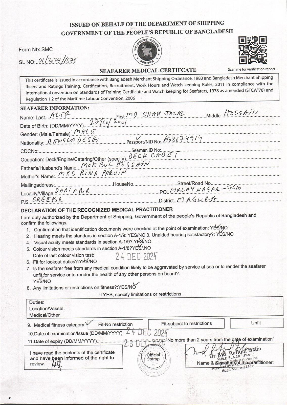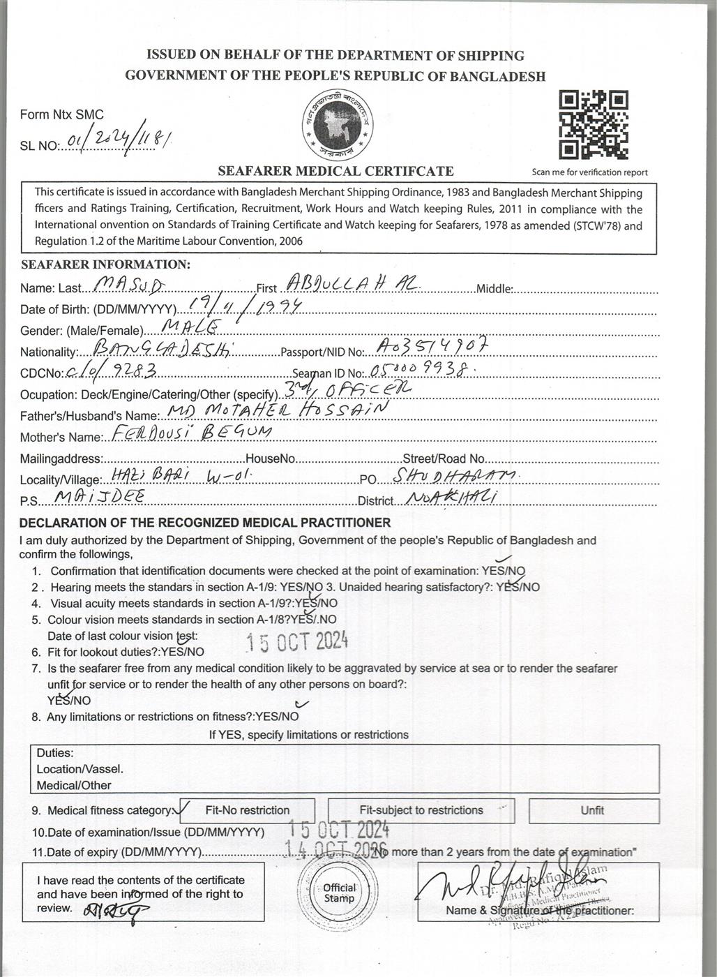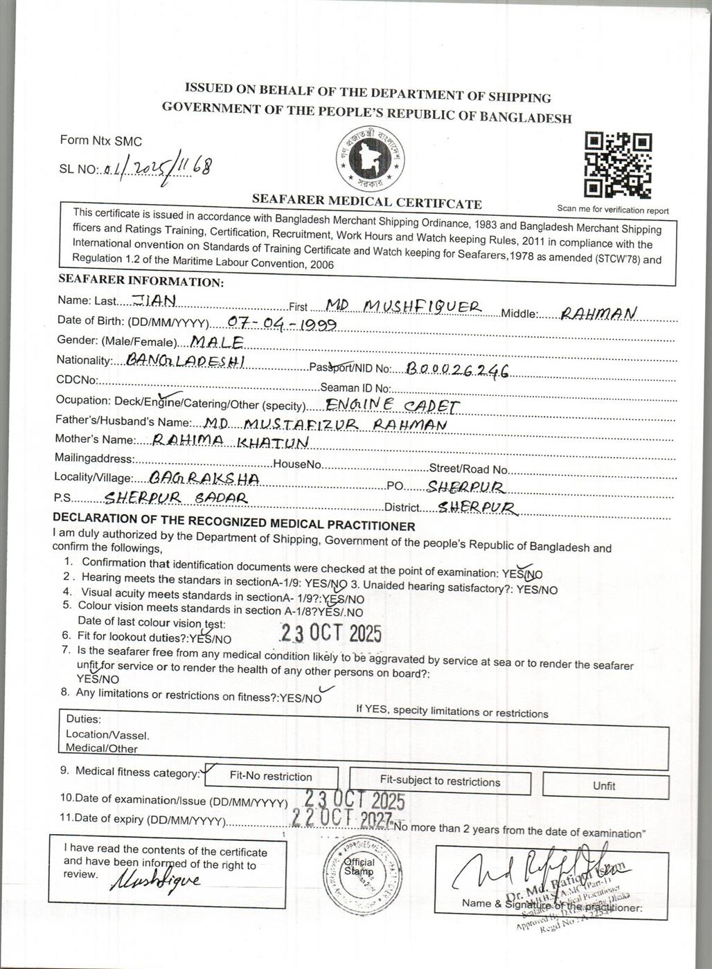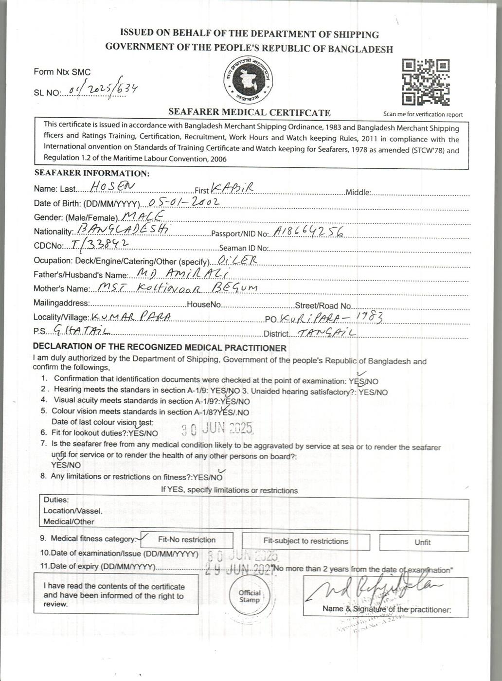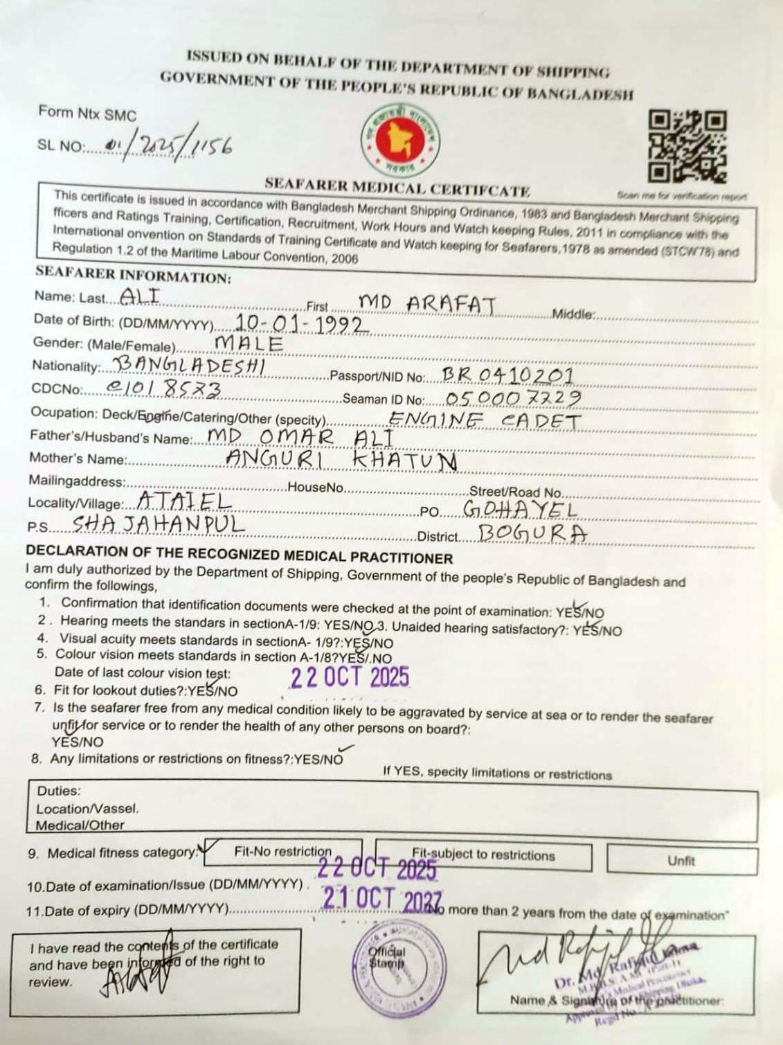 1.. SEAFARER MEDICAL CERTIFICATE