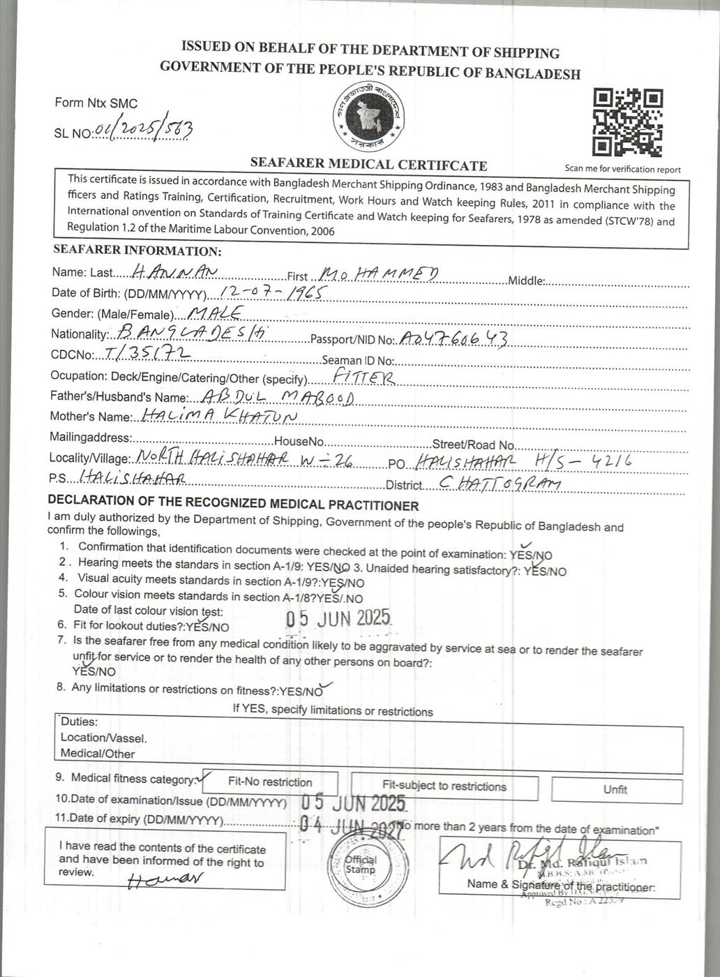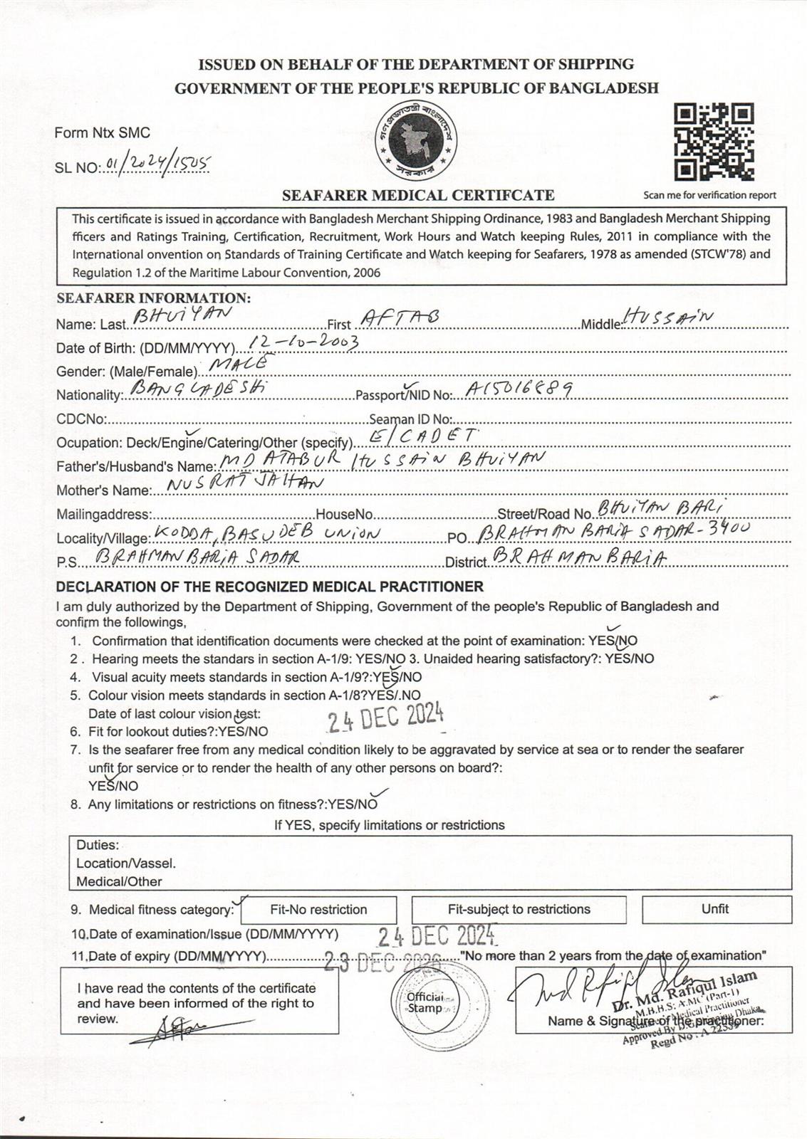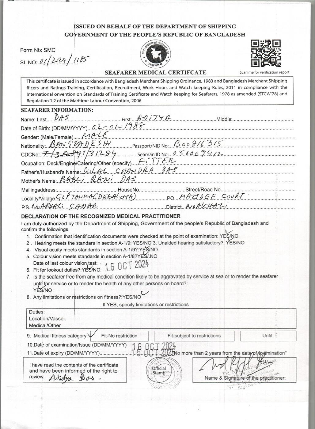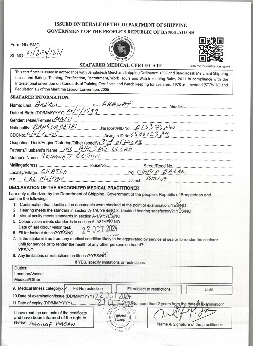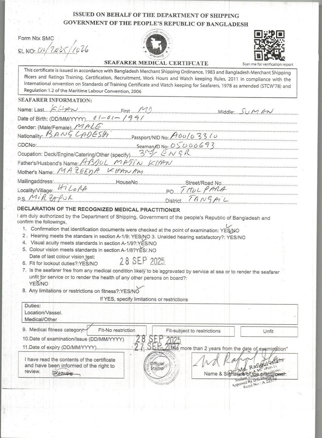 1.. SEAFARER MEDICAL CERTIFICATE