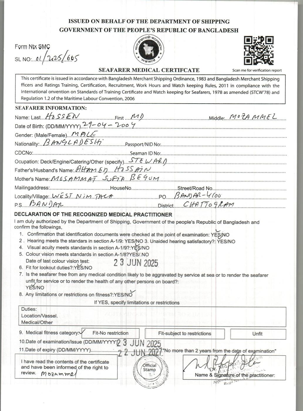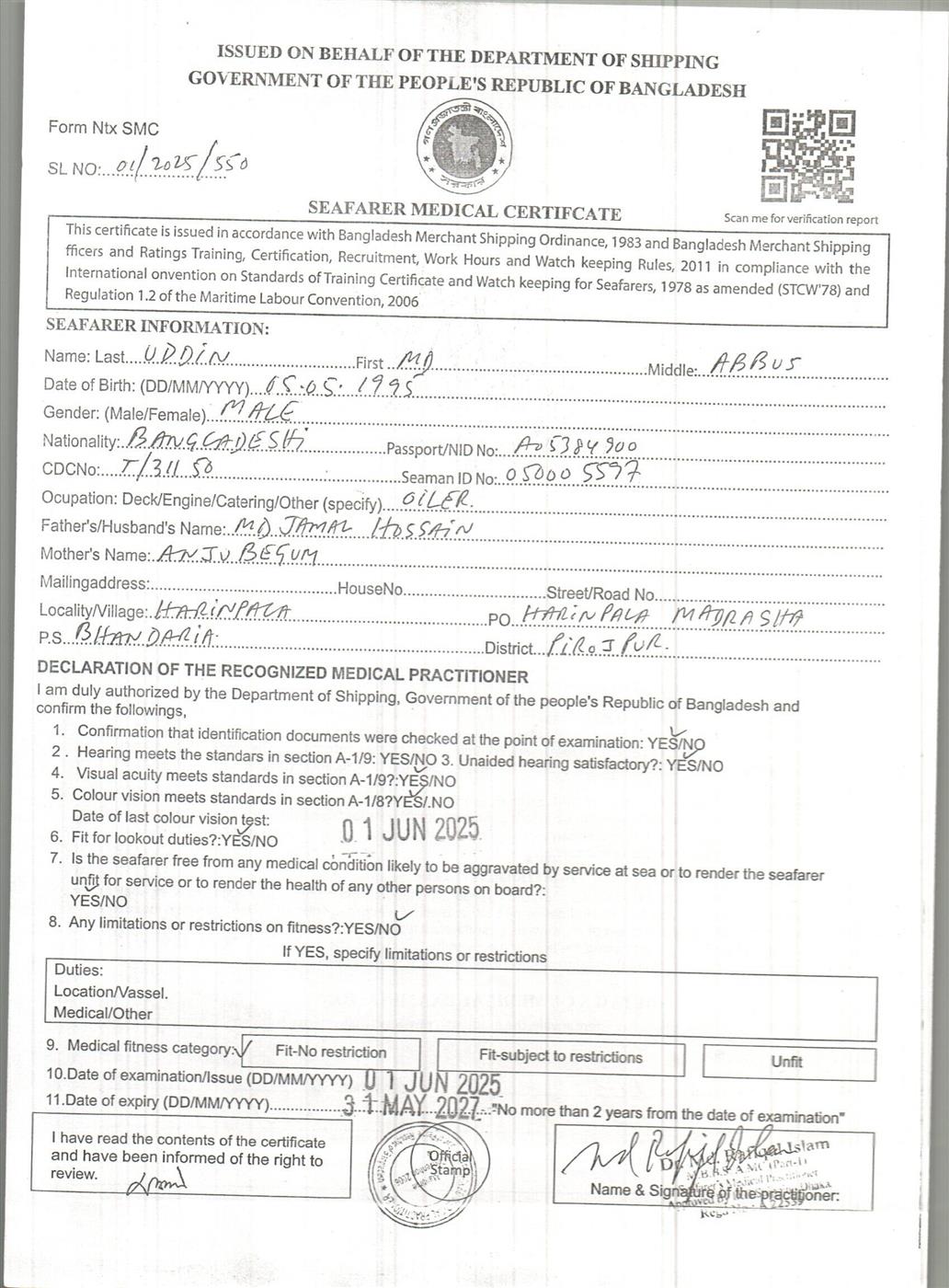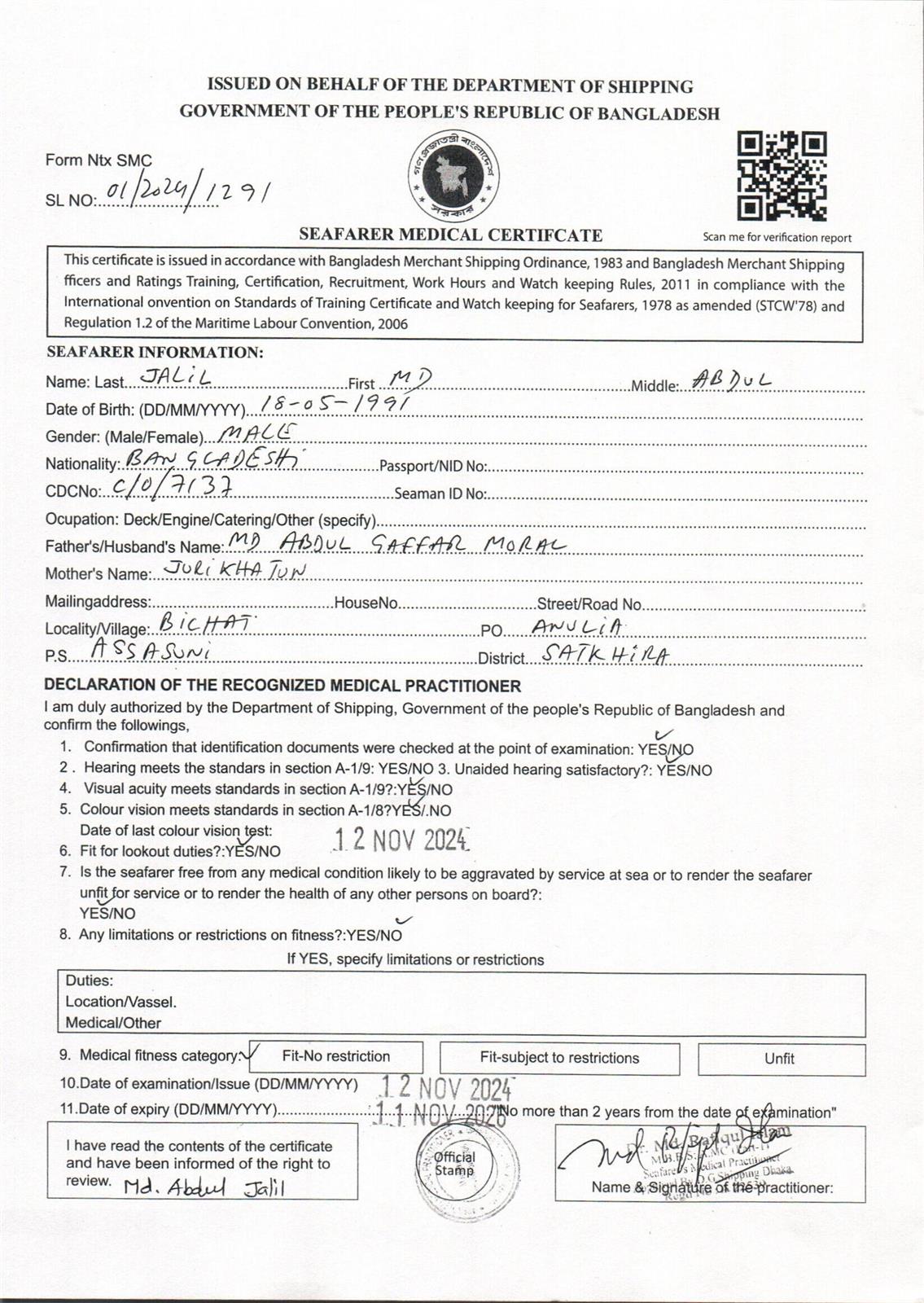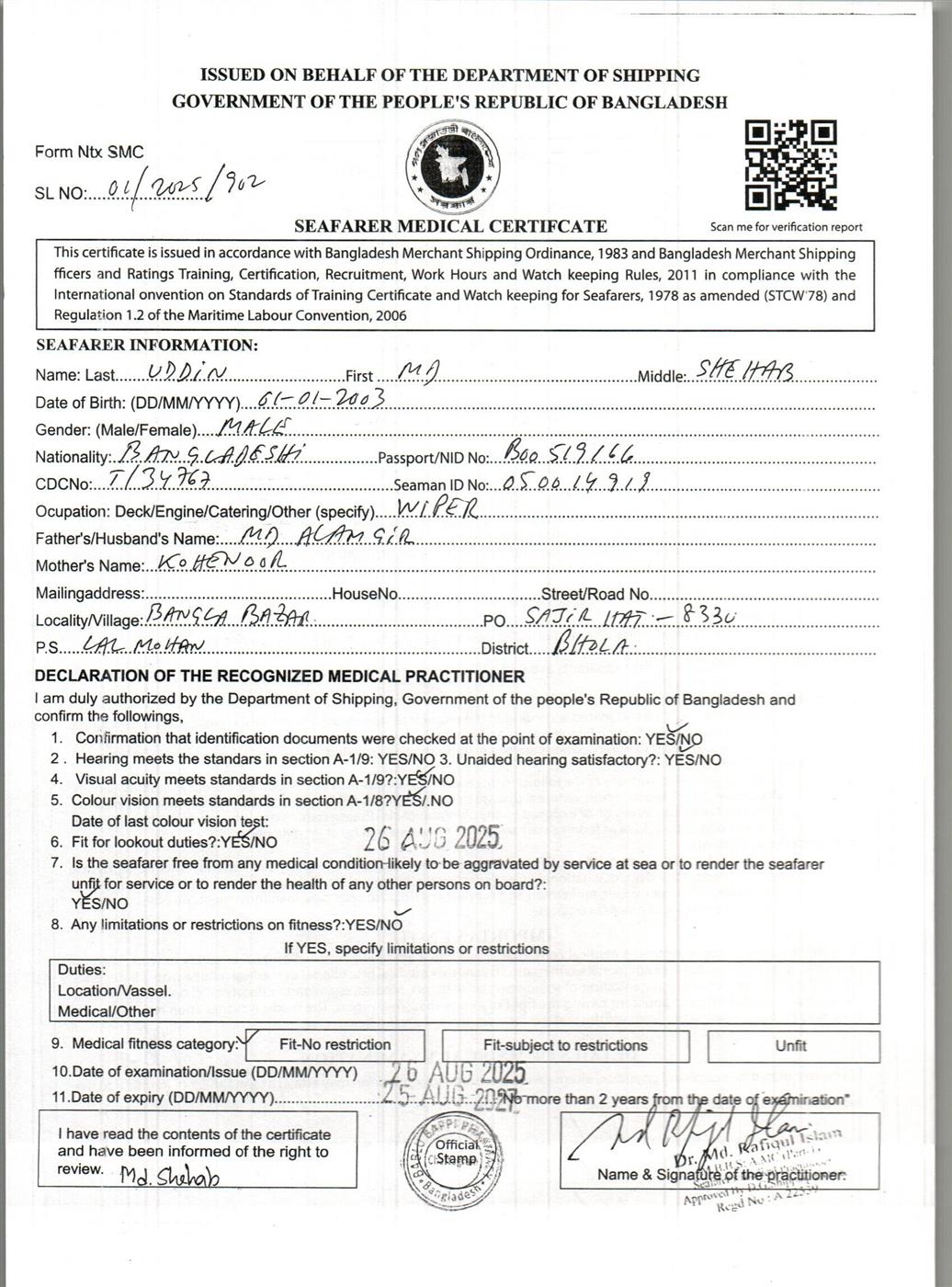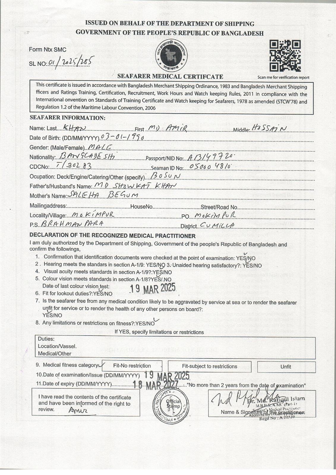 1.. SEAFARER MEDICAL CERTIFICATE