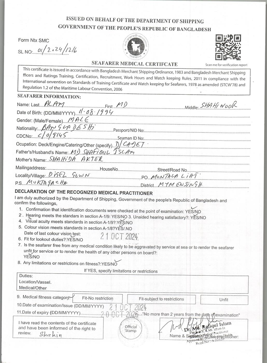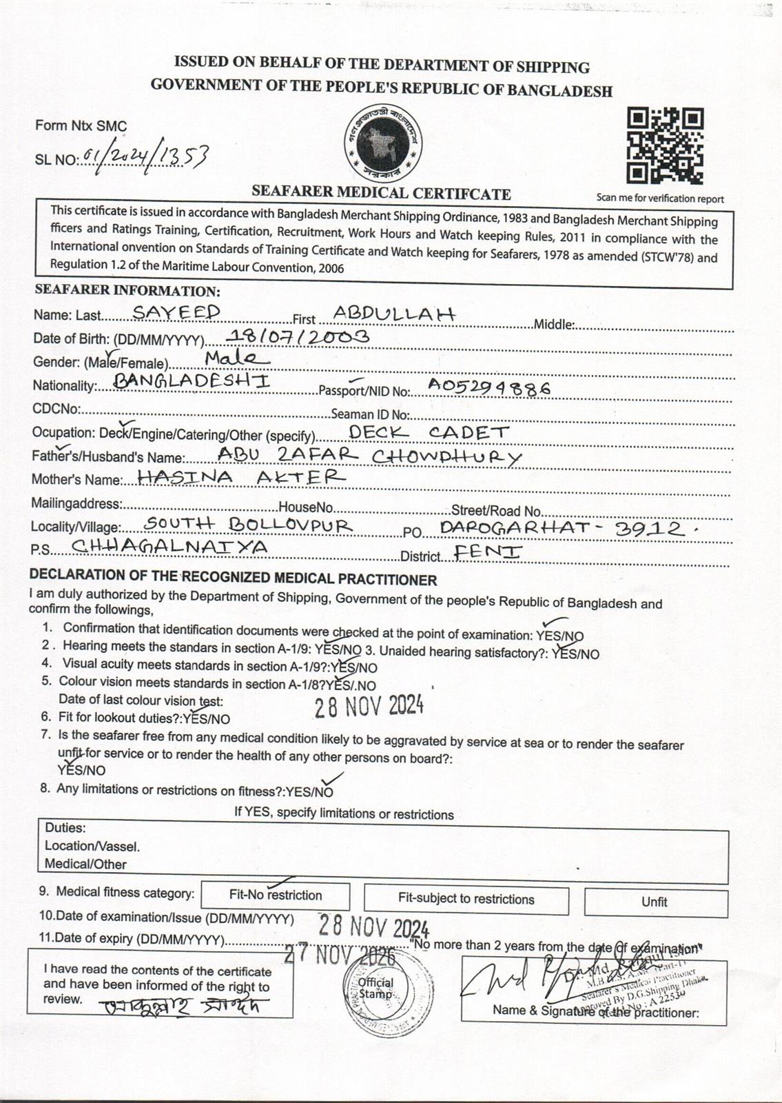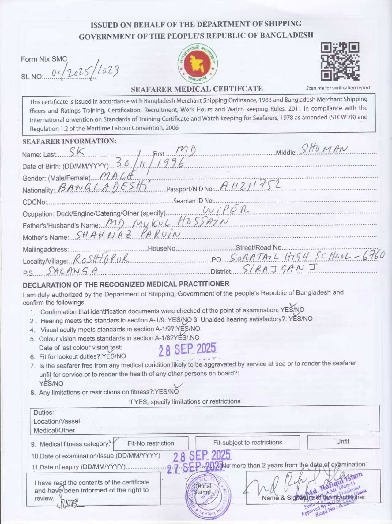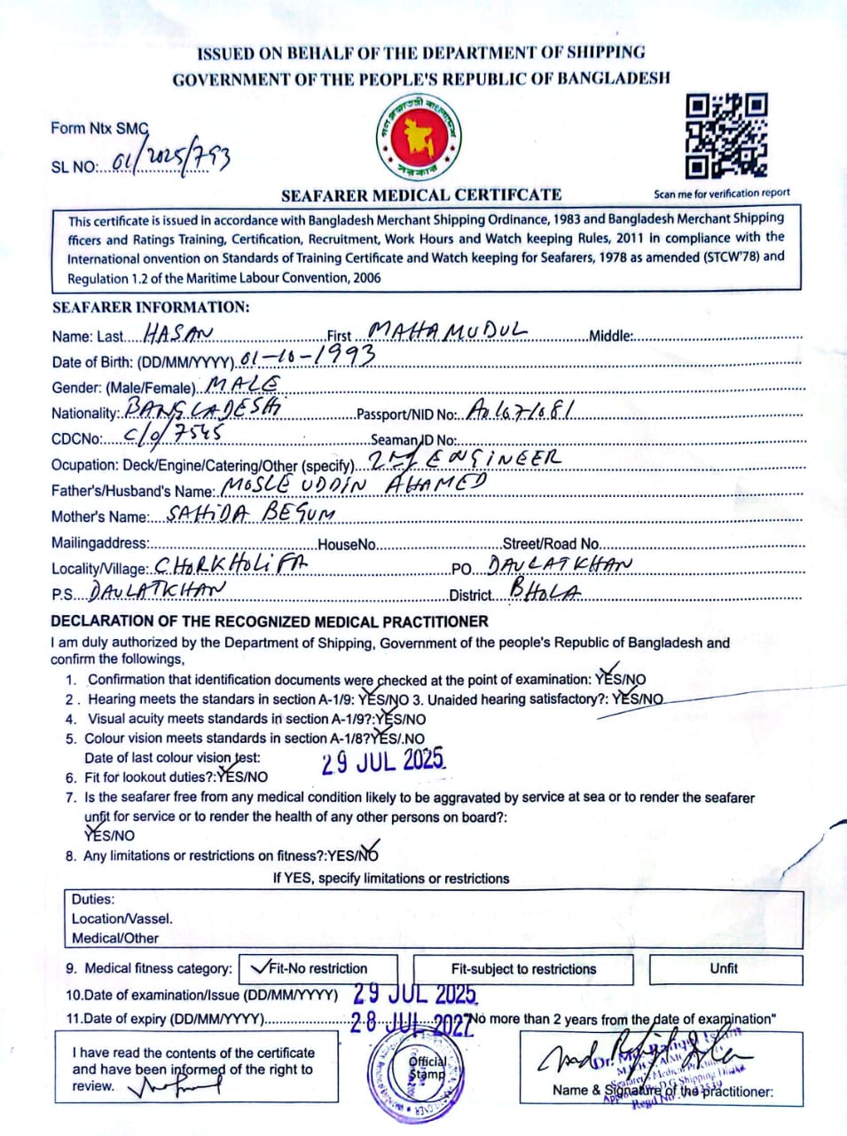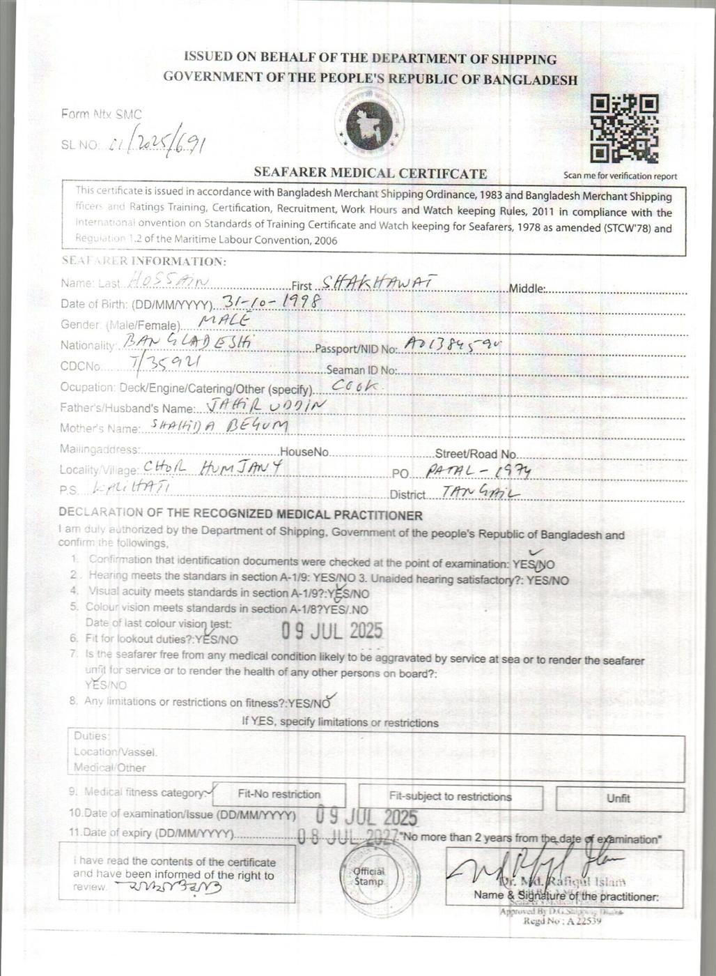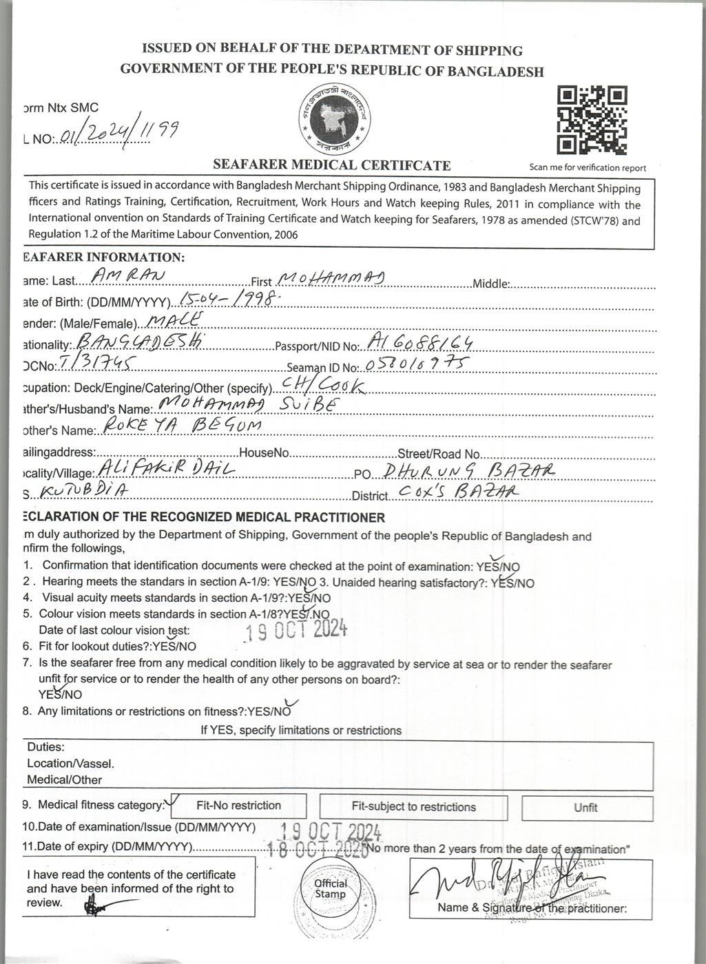 1.. SEAFARER MEDICAL CERTIFICATE