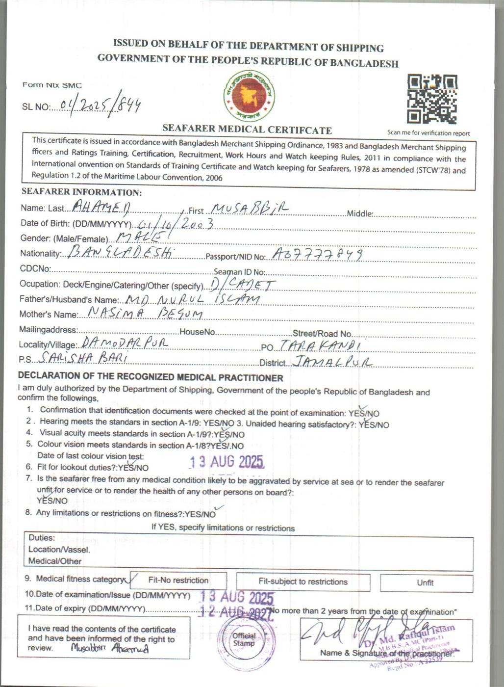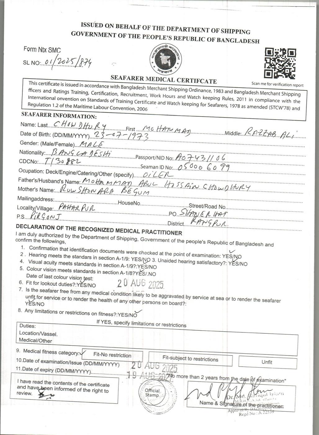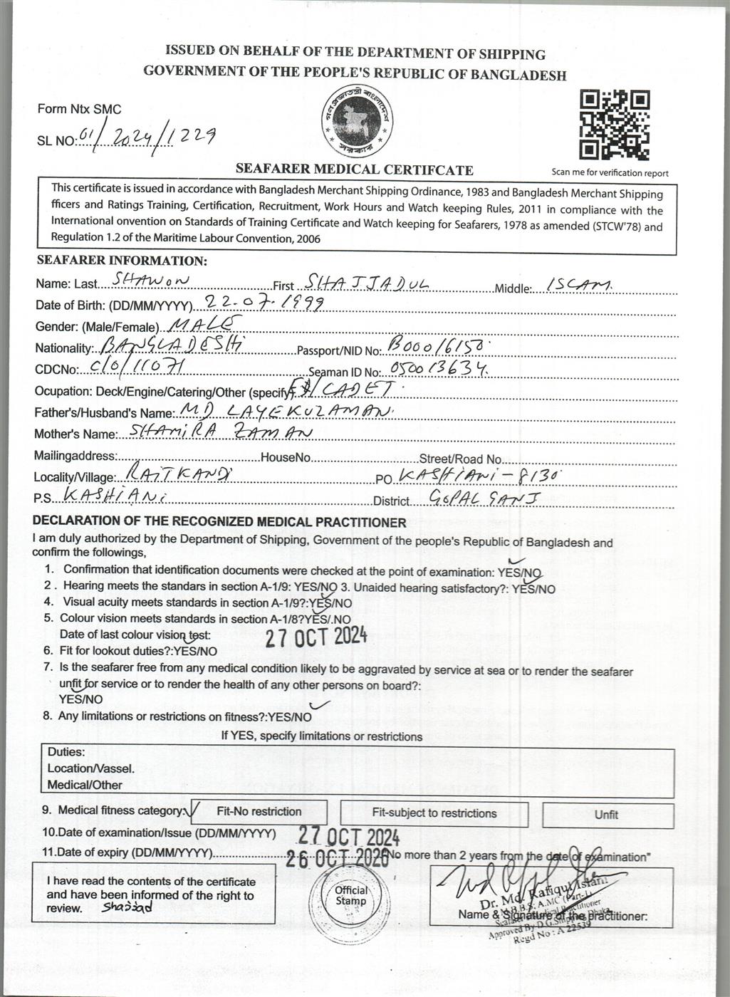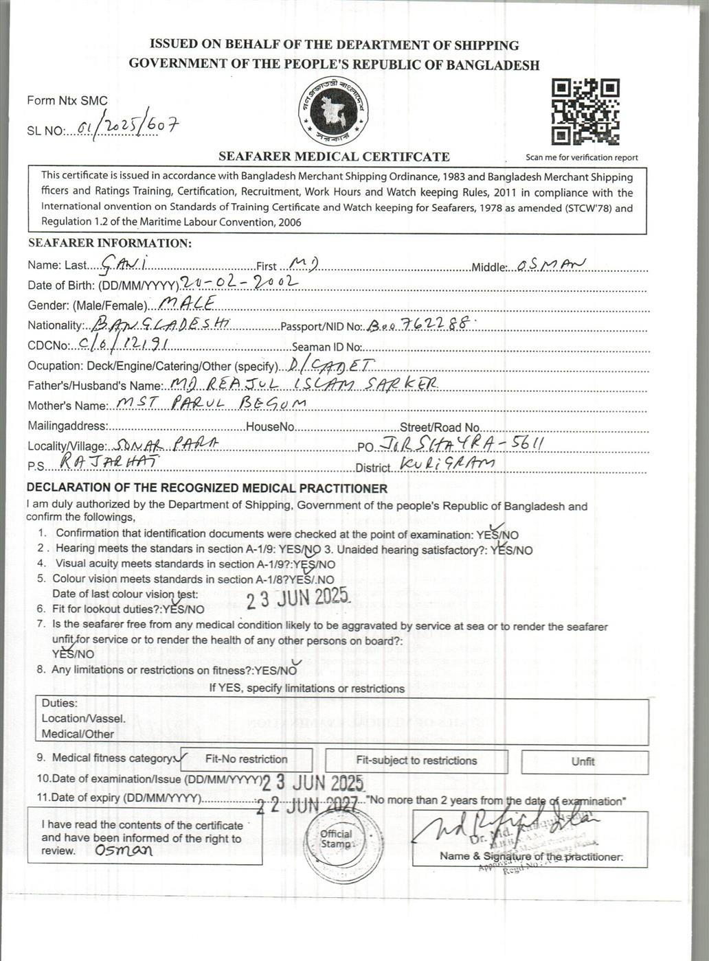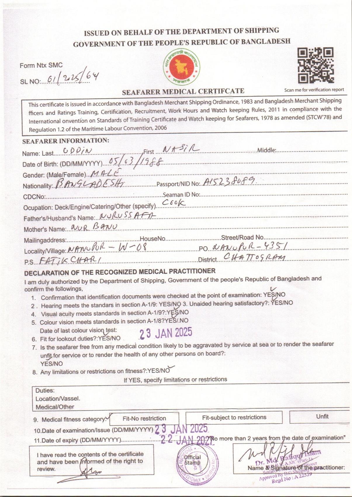 1.. SEAFARER MEDICAL CERTIFICATE