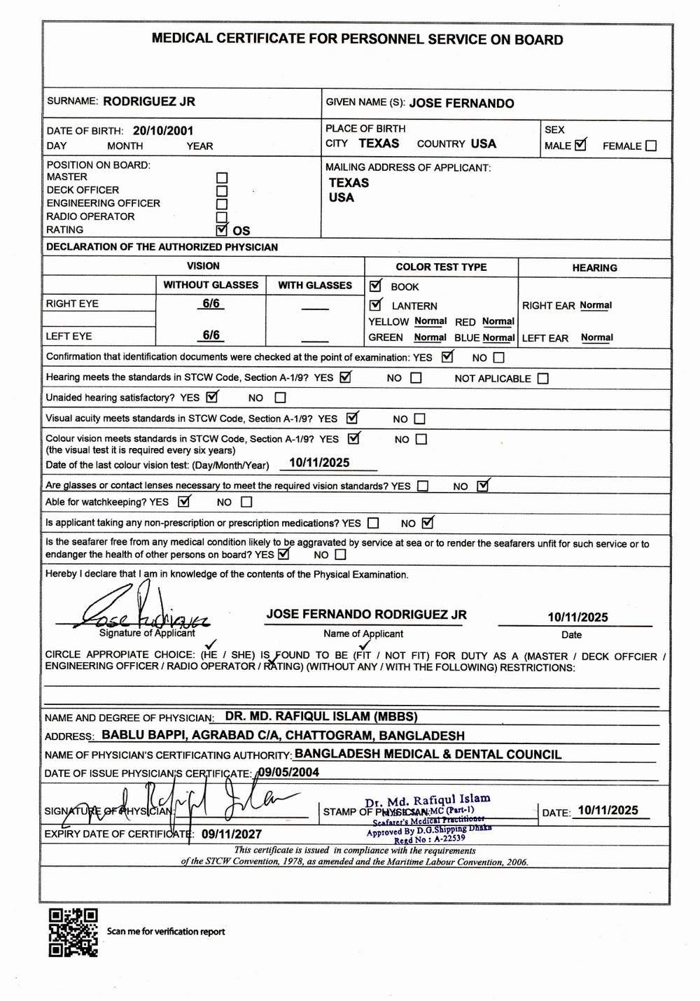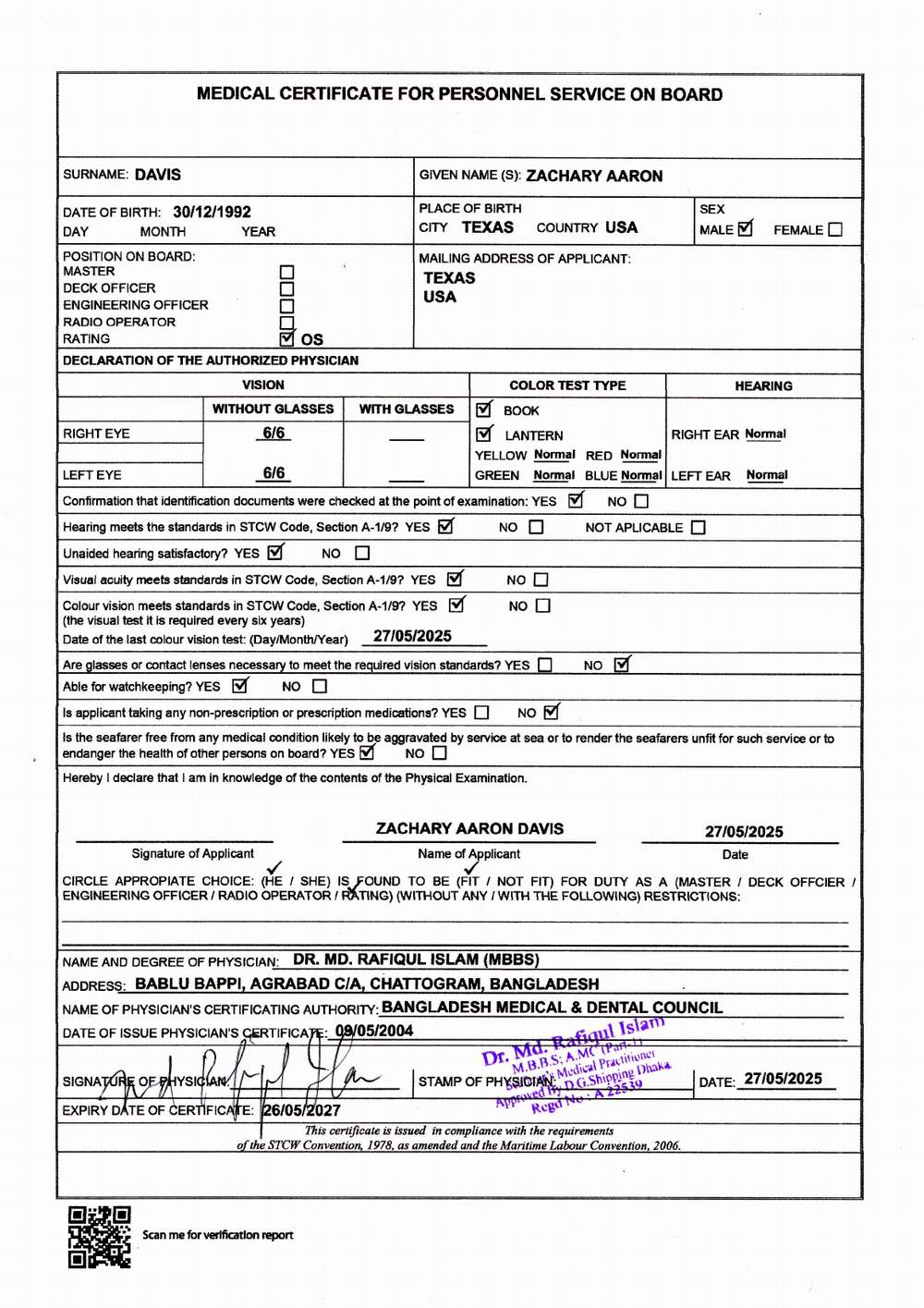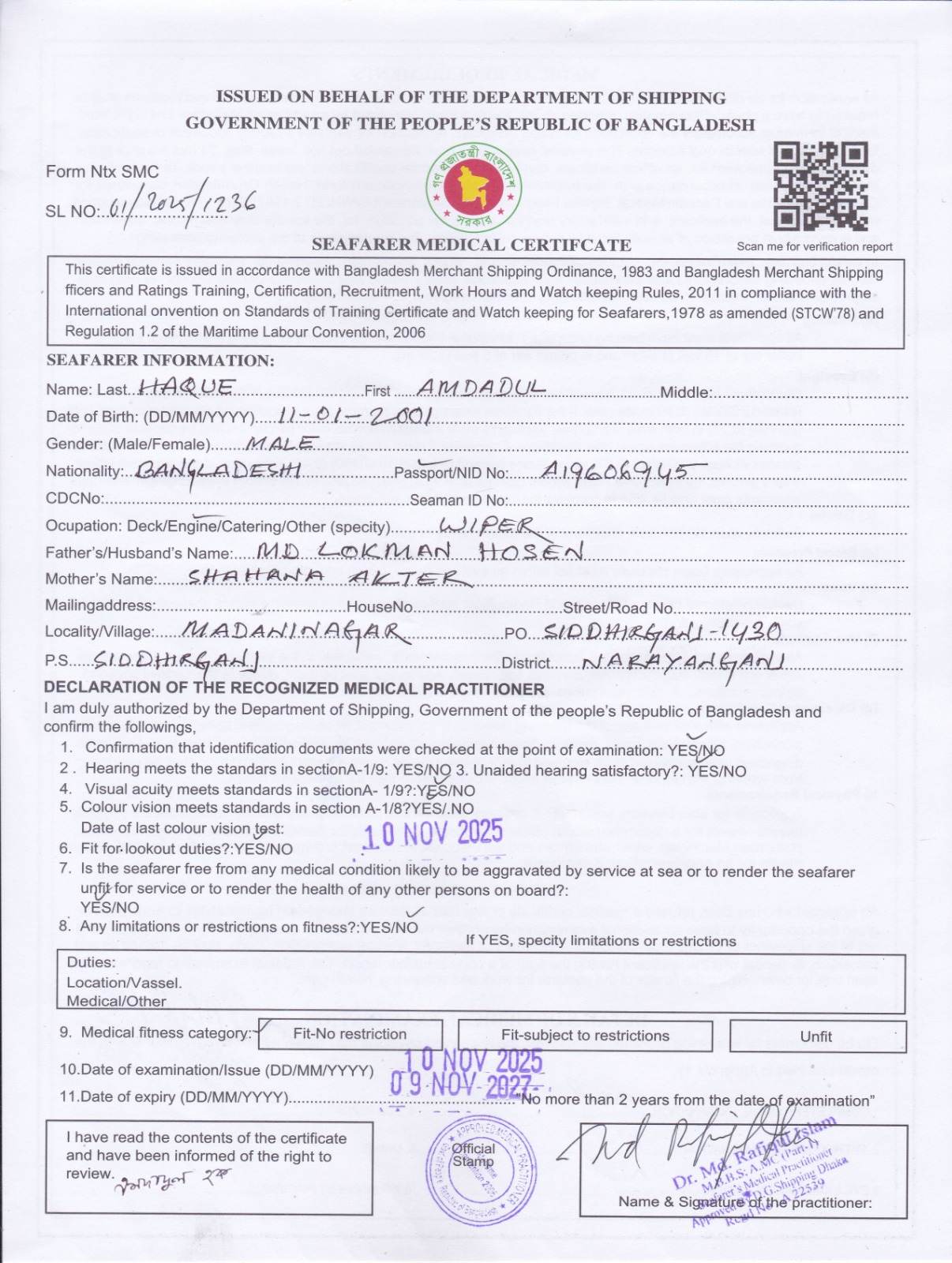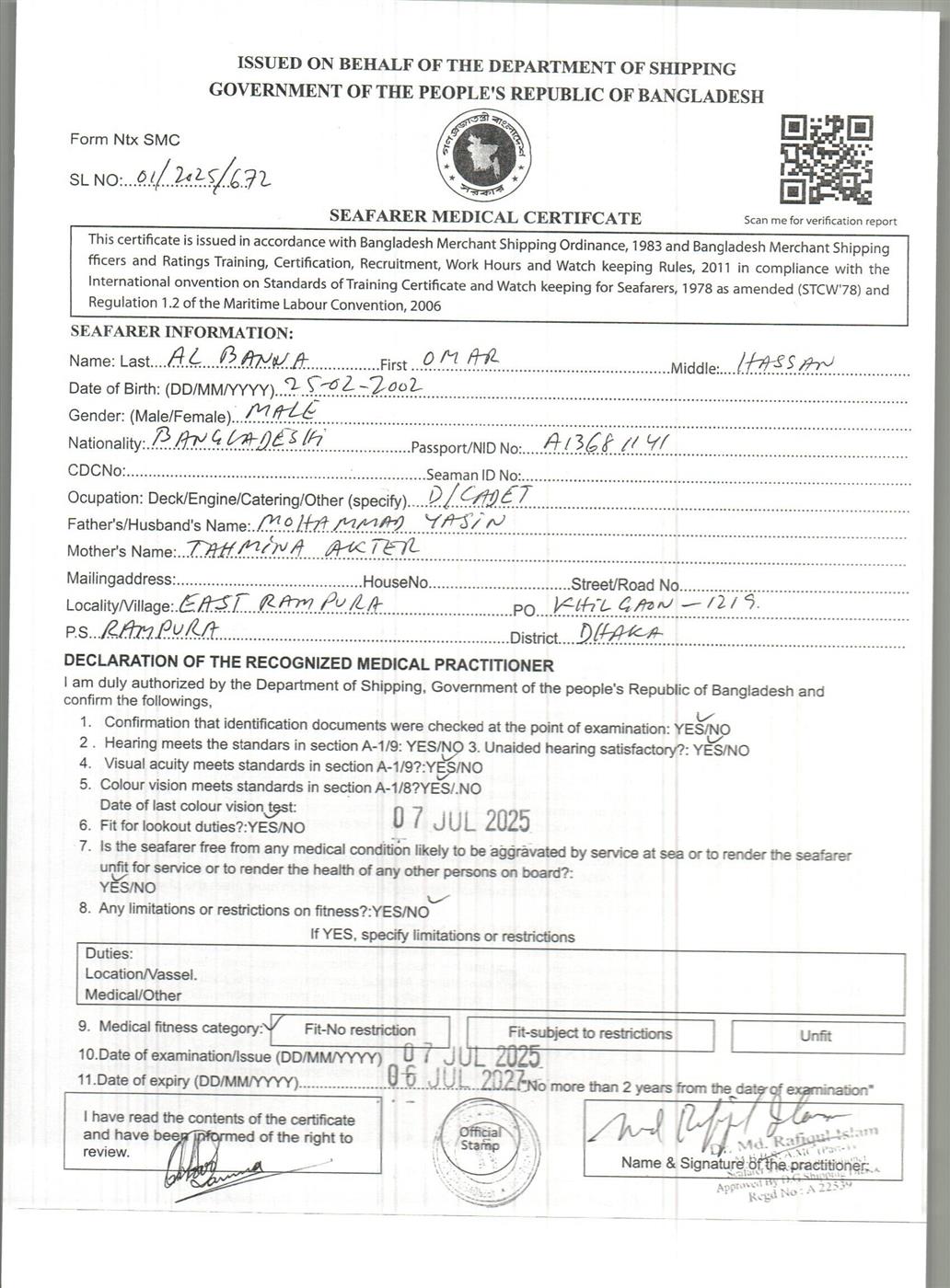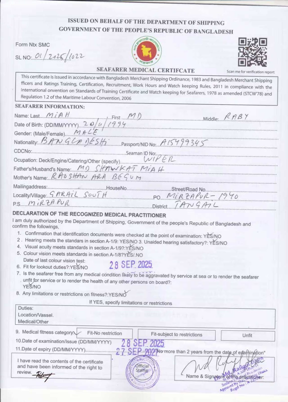 1.. SEAFARER MEDICAL CERTIFICATE