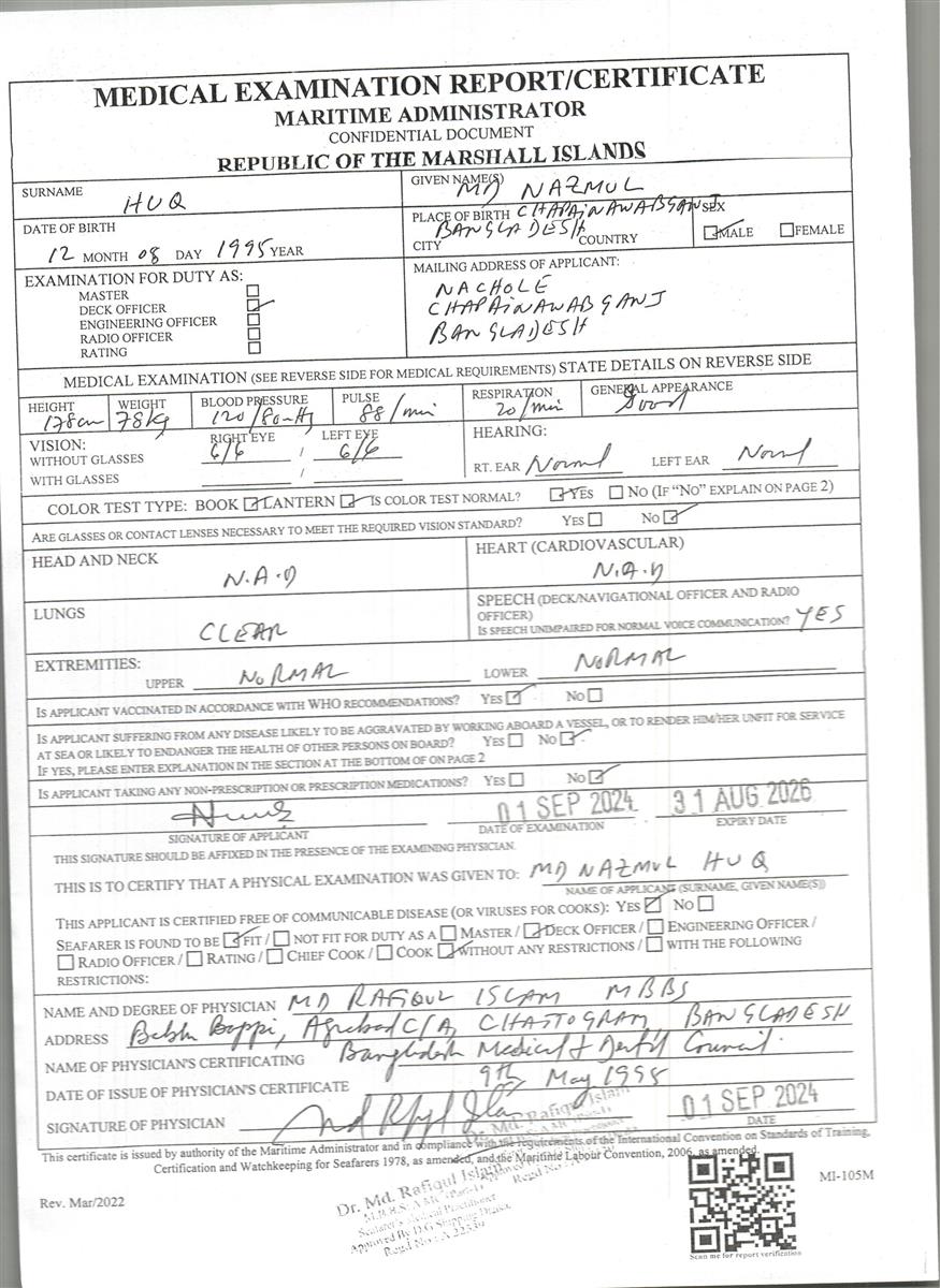 MARSHALL ISLANDS FLAG MEDICAL CERTIFICATE